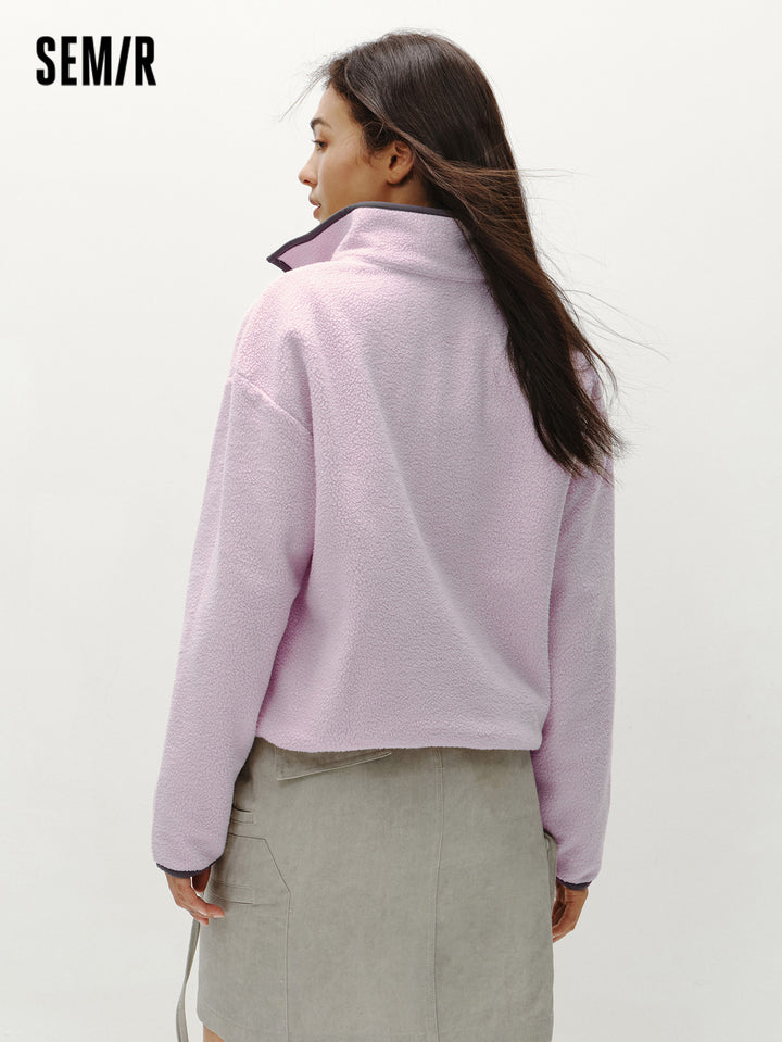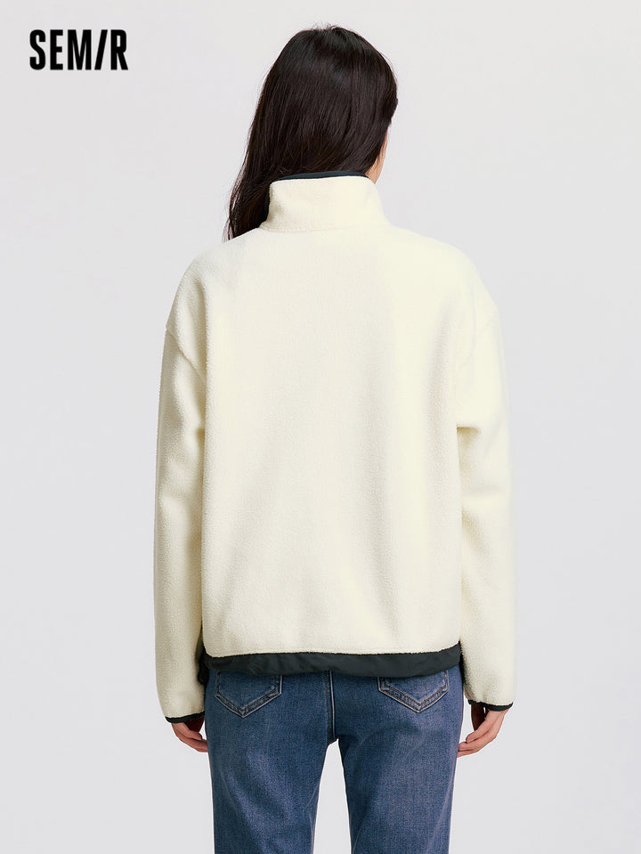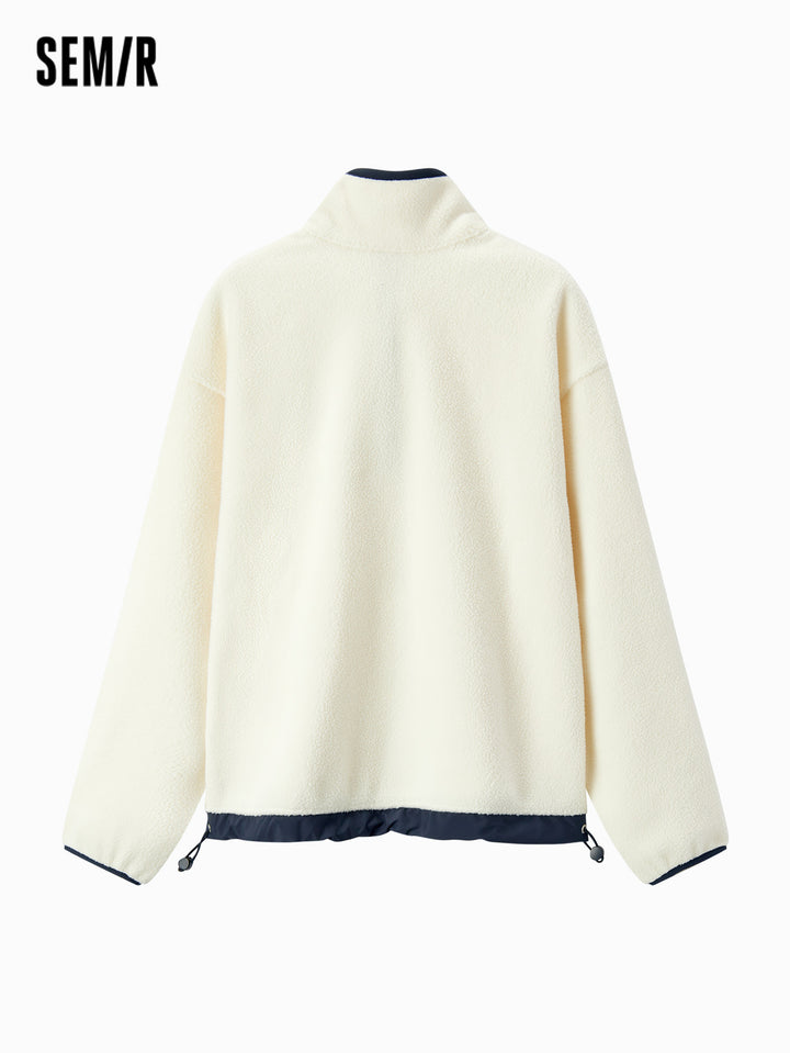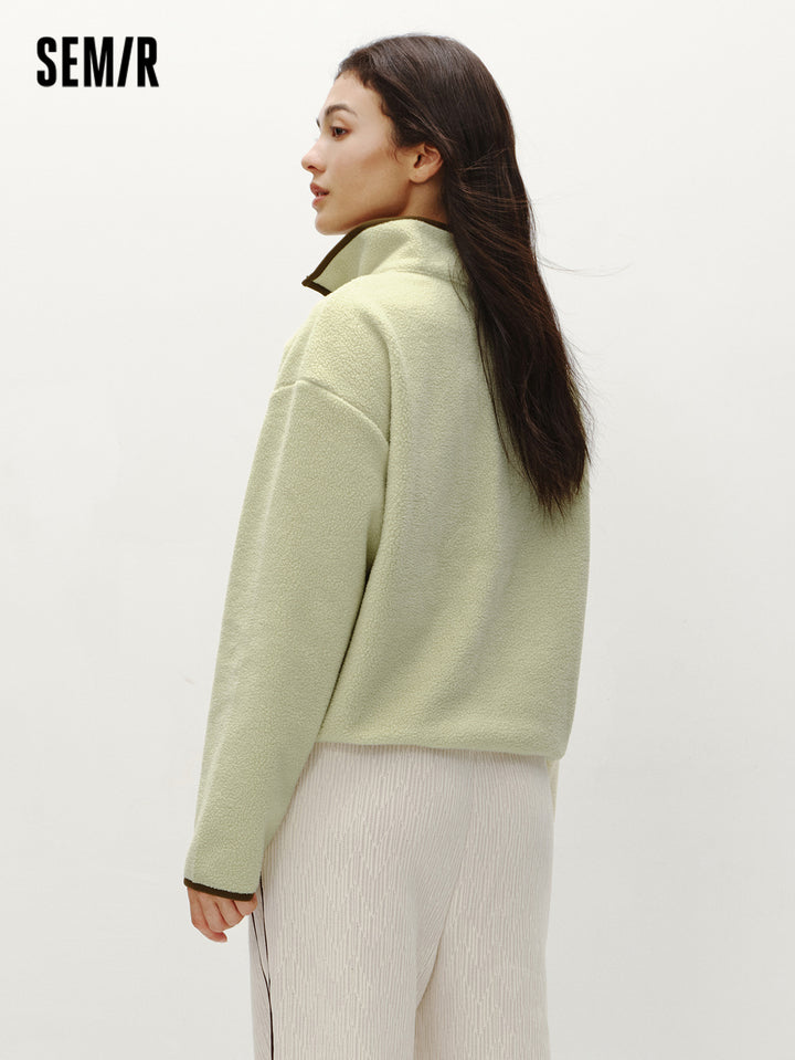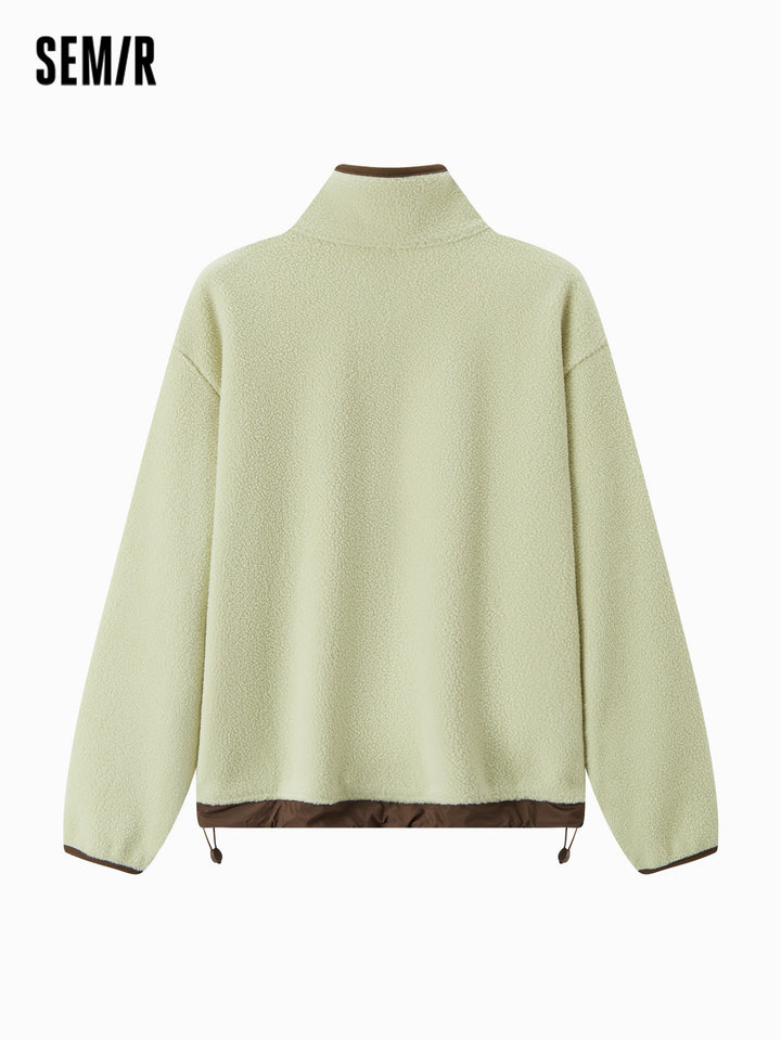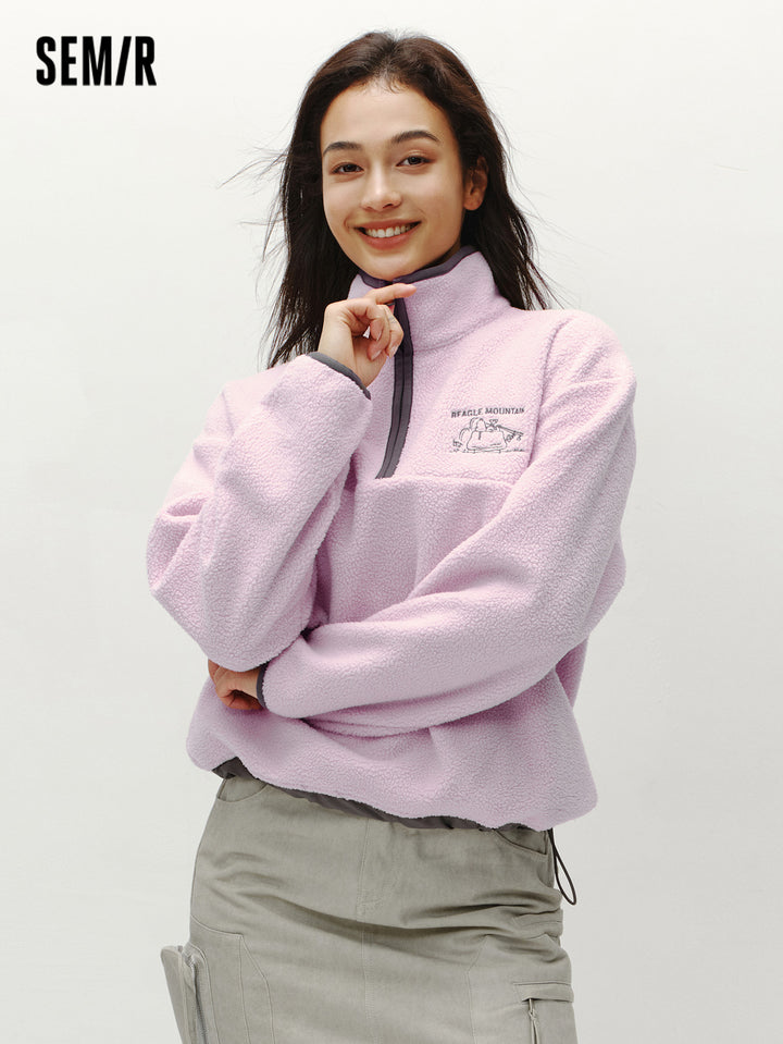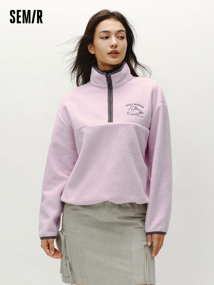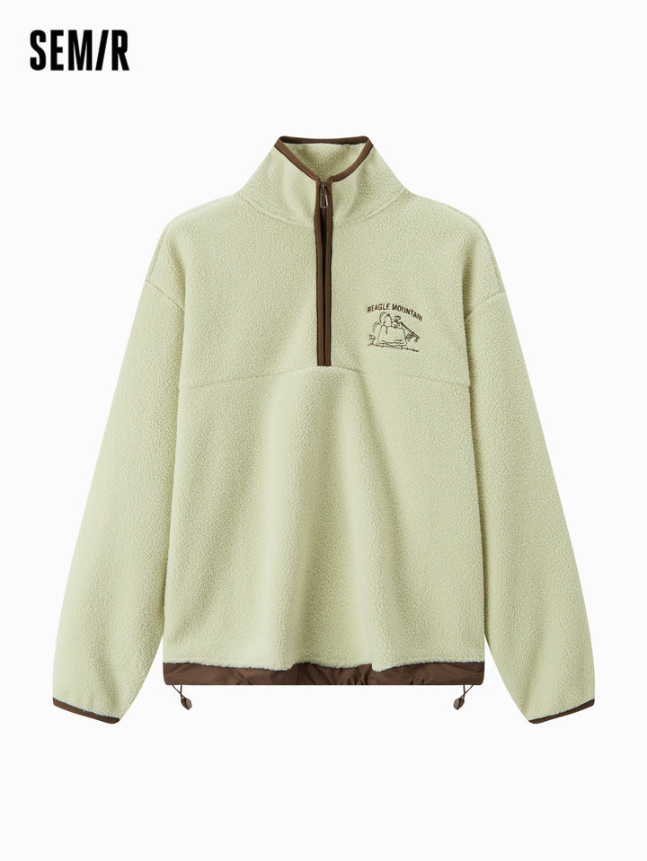 1. Easy-wear half-zip stand collar sweatshirt, delicate contrast piping and woven hem details, every detail thoughtfully designed; 2. Left chest Snoopy embroidery with fine stitching, playful and refined; 3. Slightly loose basic fit, mid-thigh length offers excellent coverage