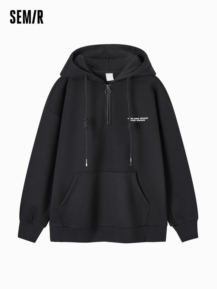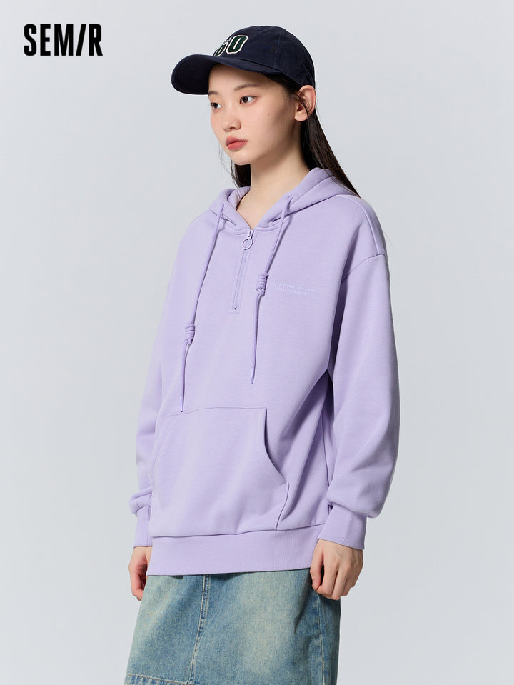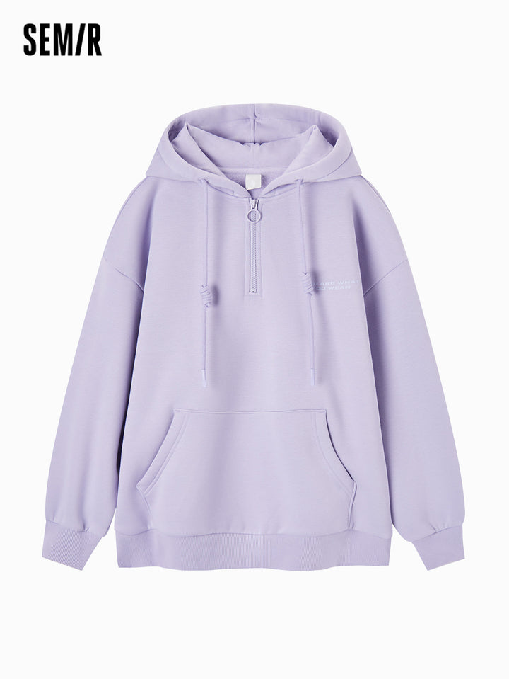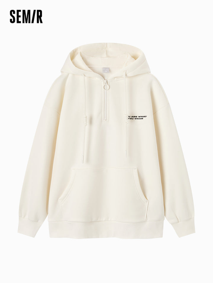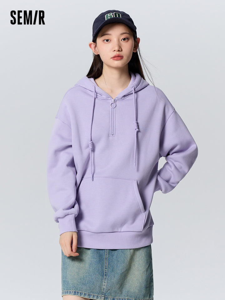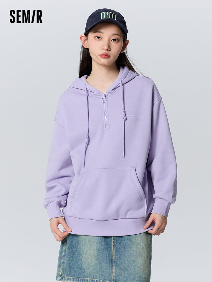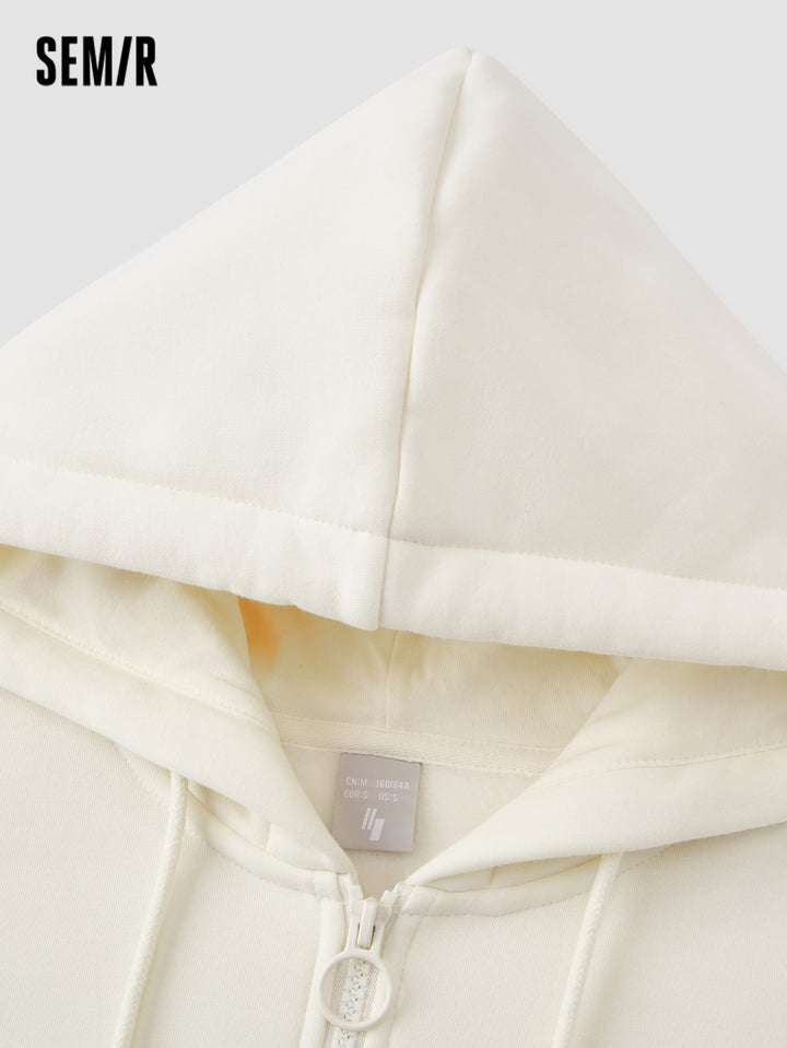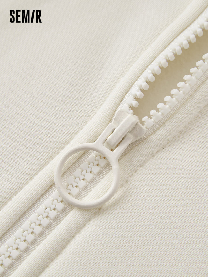 1. Bestseller loose-fit silhouette, flattering and forgiving, effectively conceals the waistline; 2. 330g fleece with brushed interior, soft, warm, and dust-resistant; 3. Matching-color front zipper for a youthful and trendy look