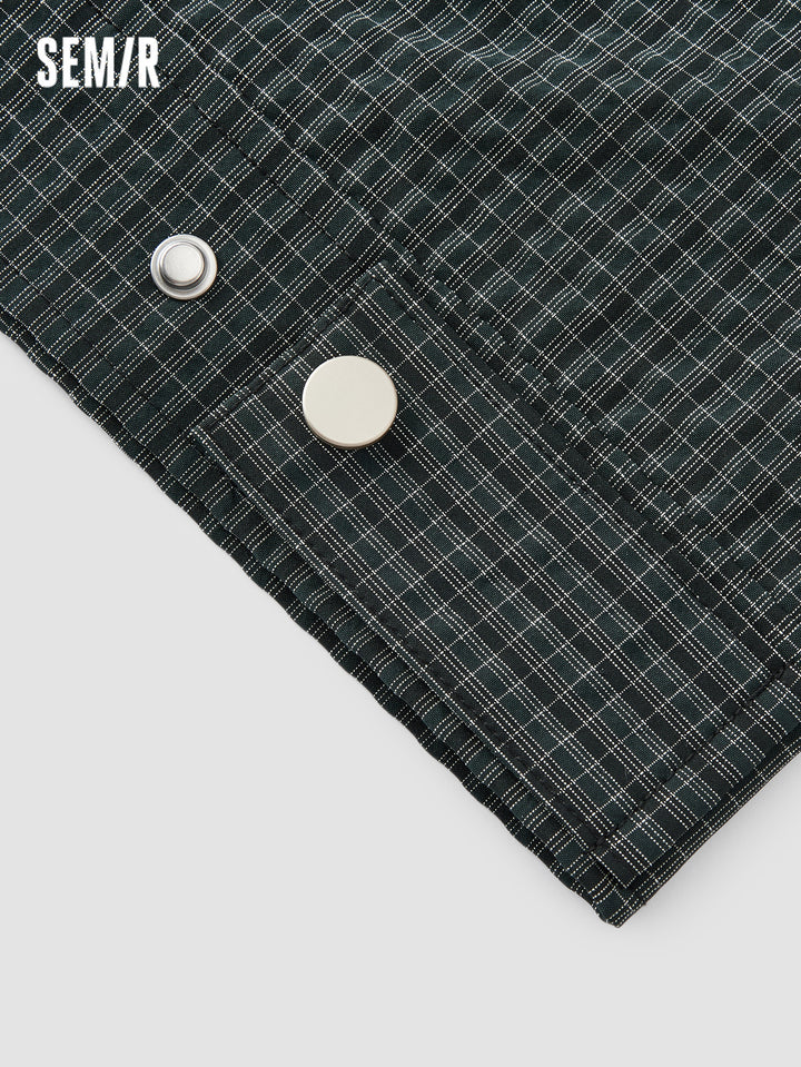 Made with textured check fabric, combining vintage feel and layered effect; elastic cuffs and hem allow easy adjustment, providing flexible wear and reflecting the youthful desire to stand out.