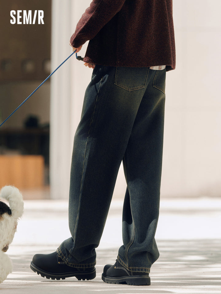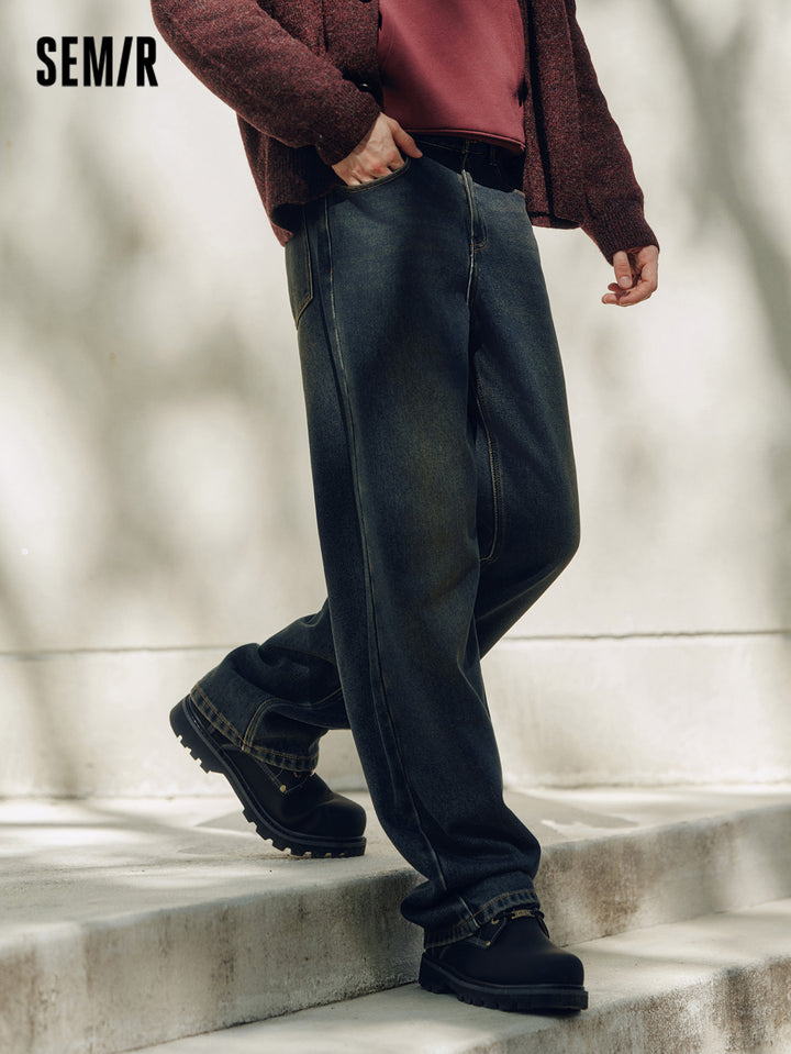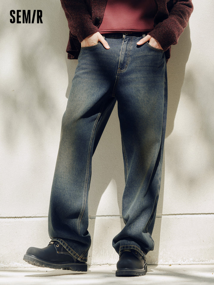1. Senrou Fuel “light-warm” loose denim; 2. New denim colors: dark blue raw (non-fading), trend washes: deep yellow mud, vintage black; 3. Natural worn textures/gradient whiskers, retro street style, reduces stiffness; 4. Loose straight-leg, comfortable for daily activity or sitting; 5. 14oz denim balances warmth and classic denim feel, fleece lining suitable for fall/winter.