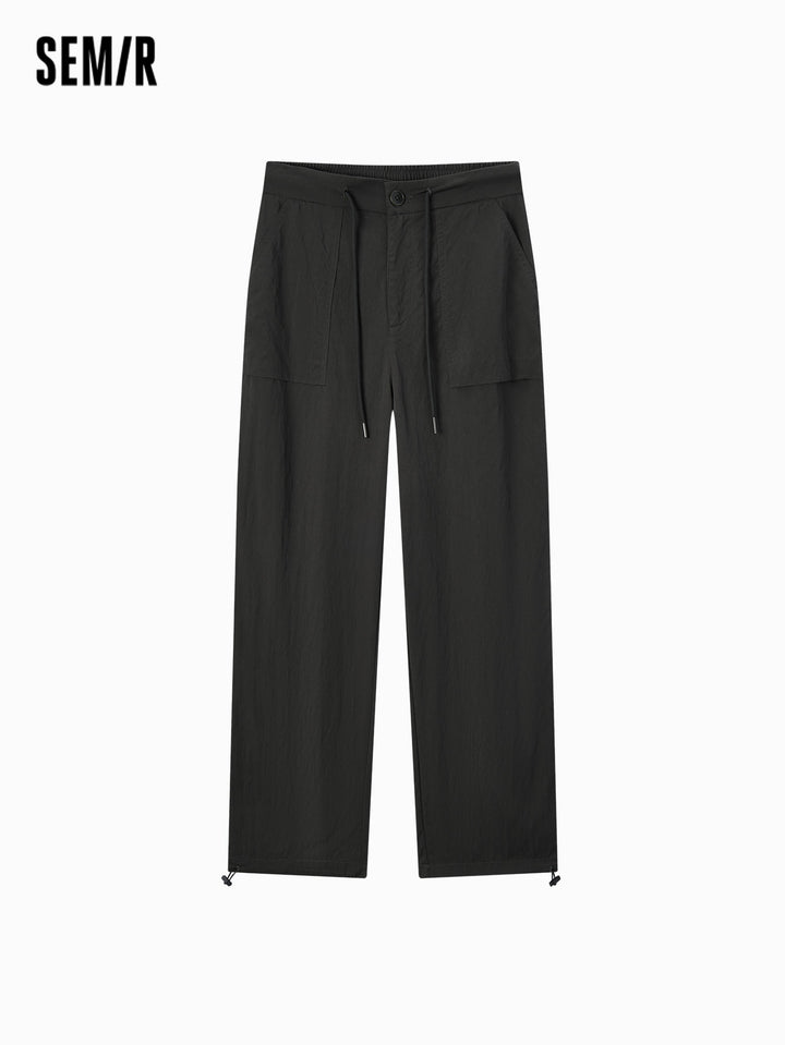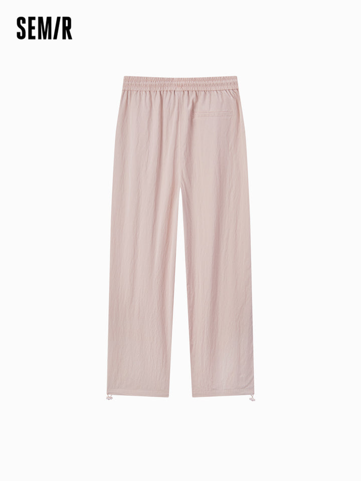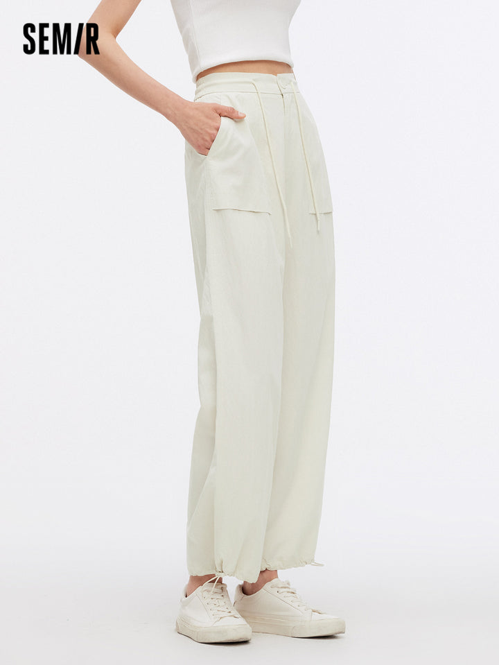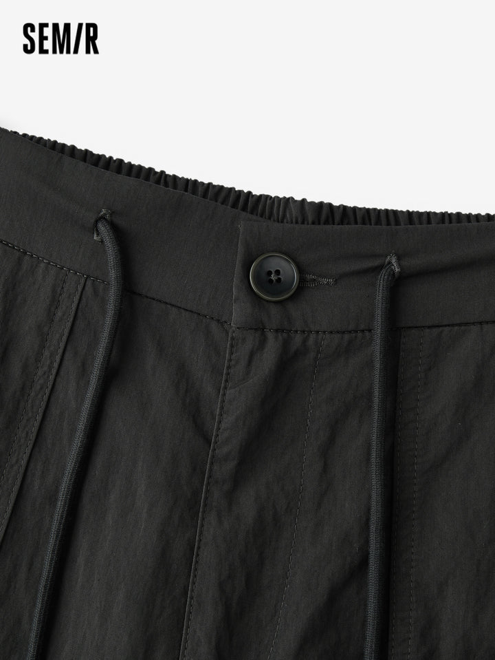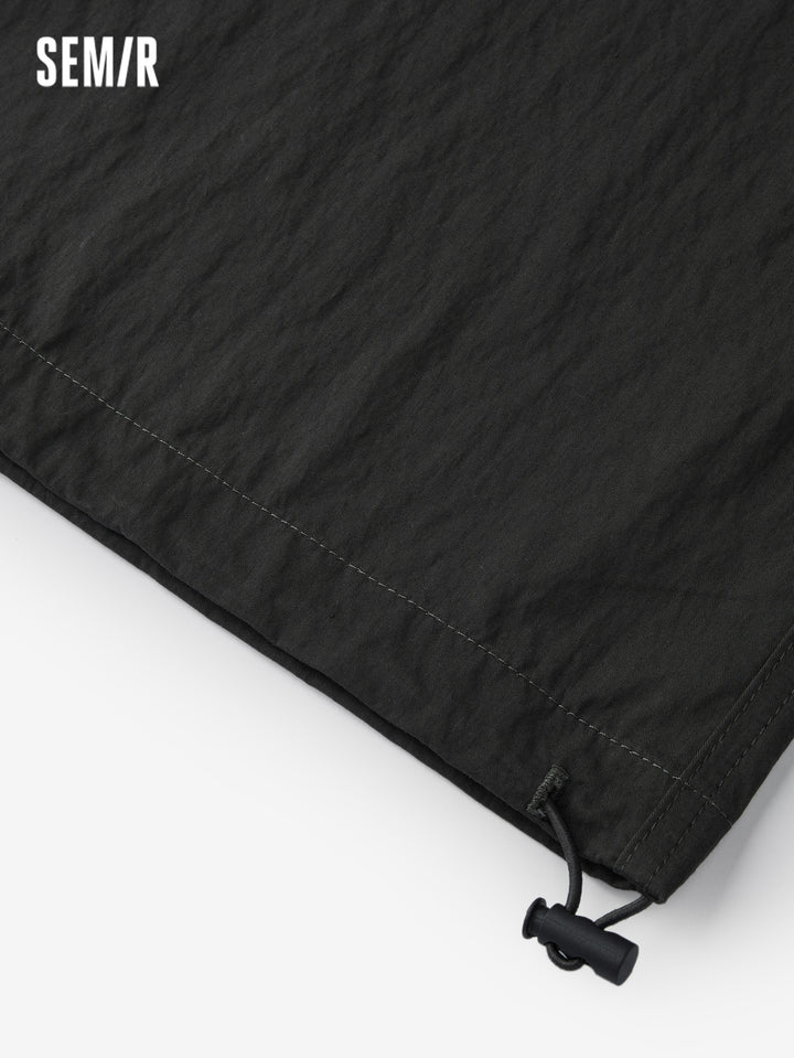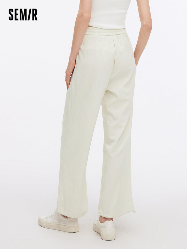 1. Cotton-nylon fabric with natural sheen, comfortable and wrinkle-resistant; 2. Straight-leg jogger style, versatile for multiple occasions; 3. Light workwear details with a half-elastic waistband, practical and stylish, adding extra layering.