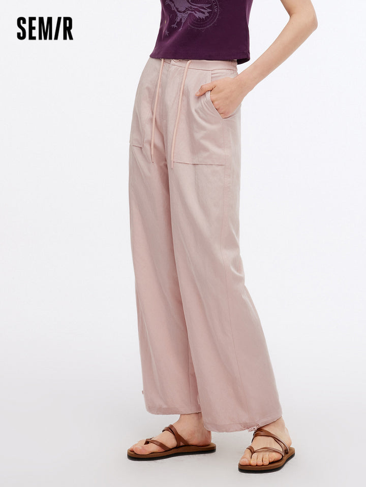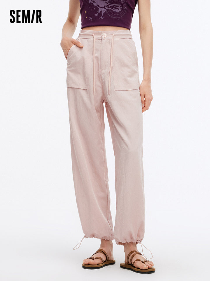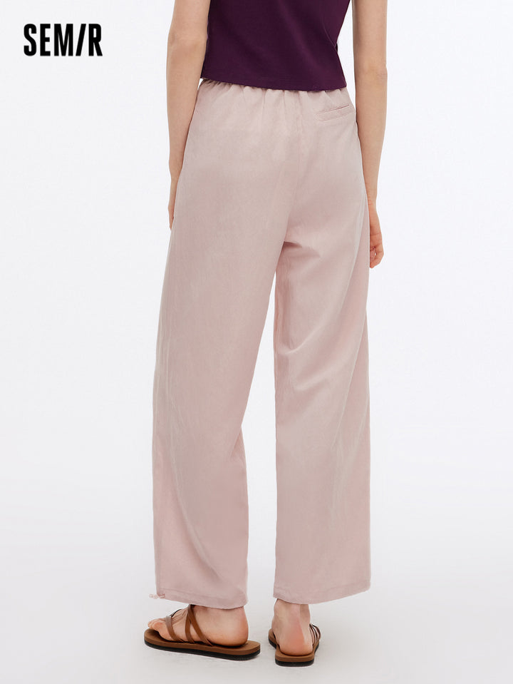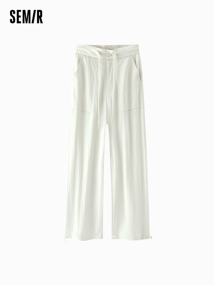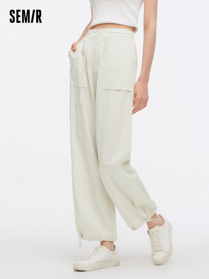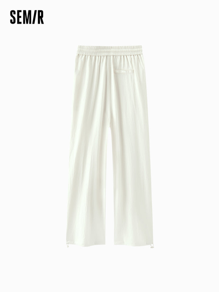 1. Cotton-nylon fabric with natural sheen, comfortable and wrinkle-resistant; 2. Straight-leg jogger style, versatile for multiple occasions; 3. Light workwear details with a half-elastic waistband, practical and stylish, adding extra layering.