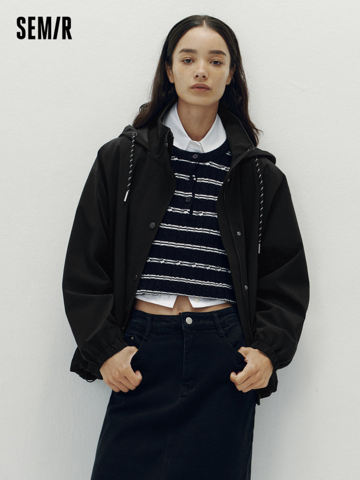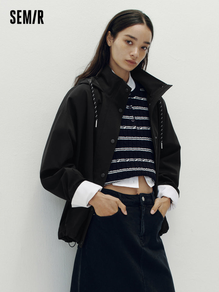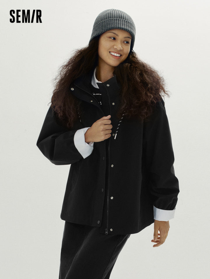 265g cotton-polyester waffle fabric, micro-texture, comfortable and elastic, Henry collar simple and stylish; fine stitching, versatile, enhances overall quality and details.