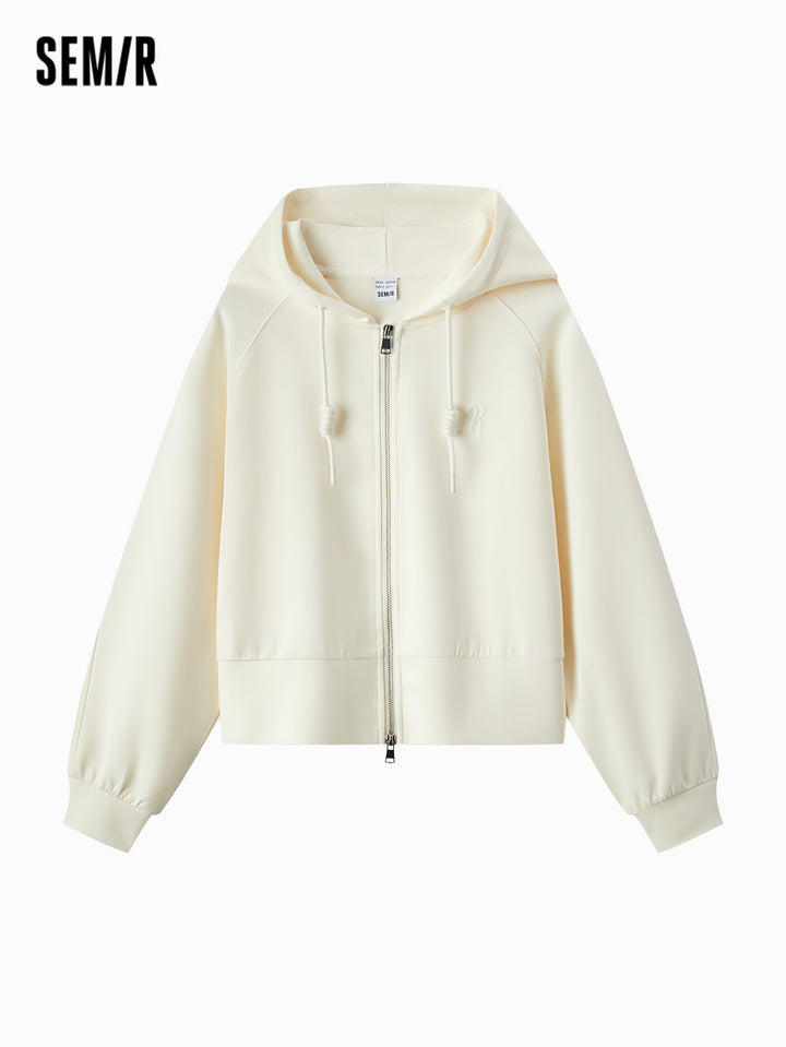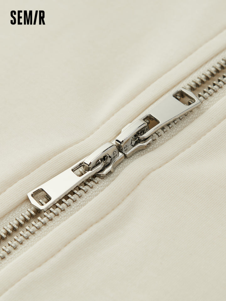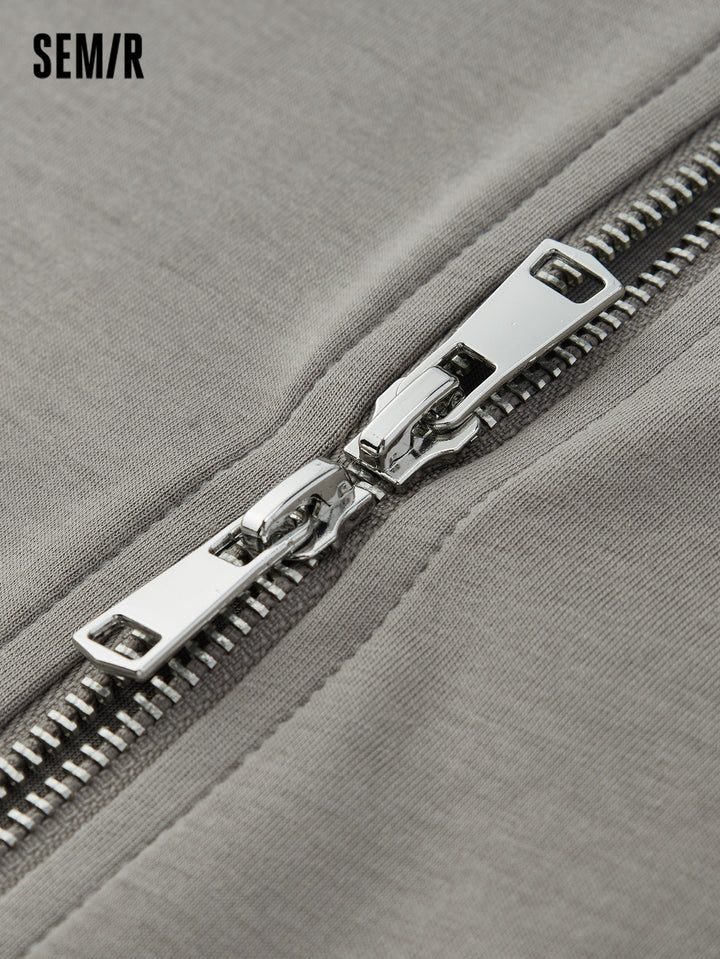 1: Loose straight raglan sleeve fit, highly accommodating, slims body; 2: Cotton-feel air layer fabric, fine surface, soft and structured hand-feel with airy texture; 3: Custom matte silver dual metal zipper, dual-opening, versatile styling