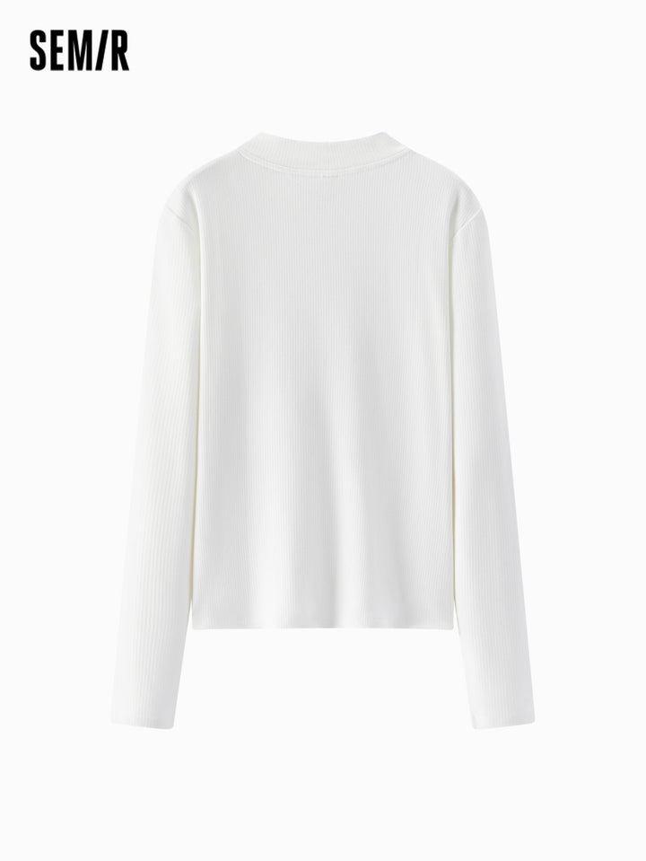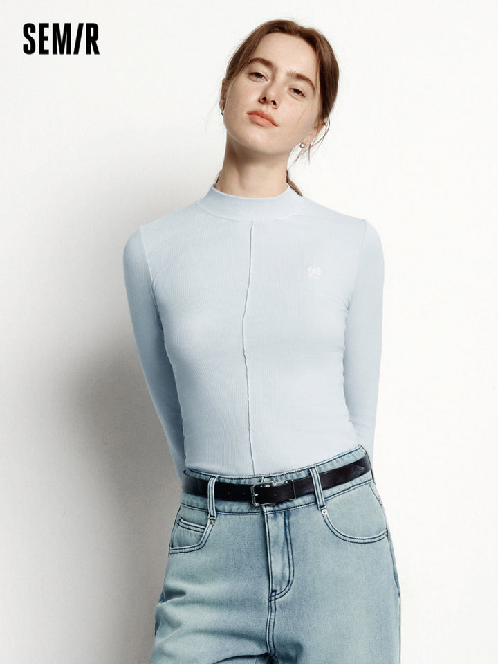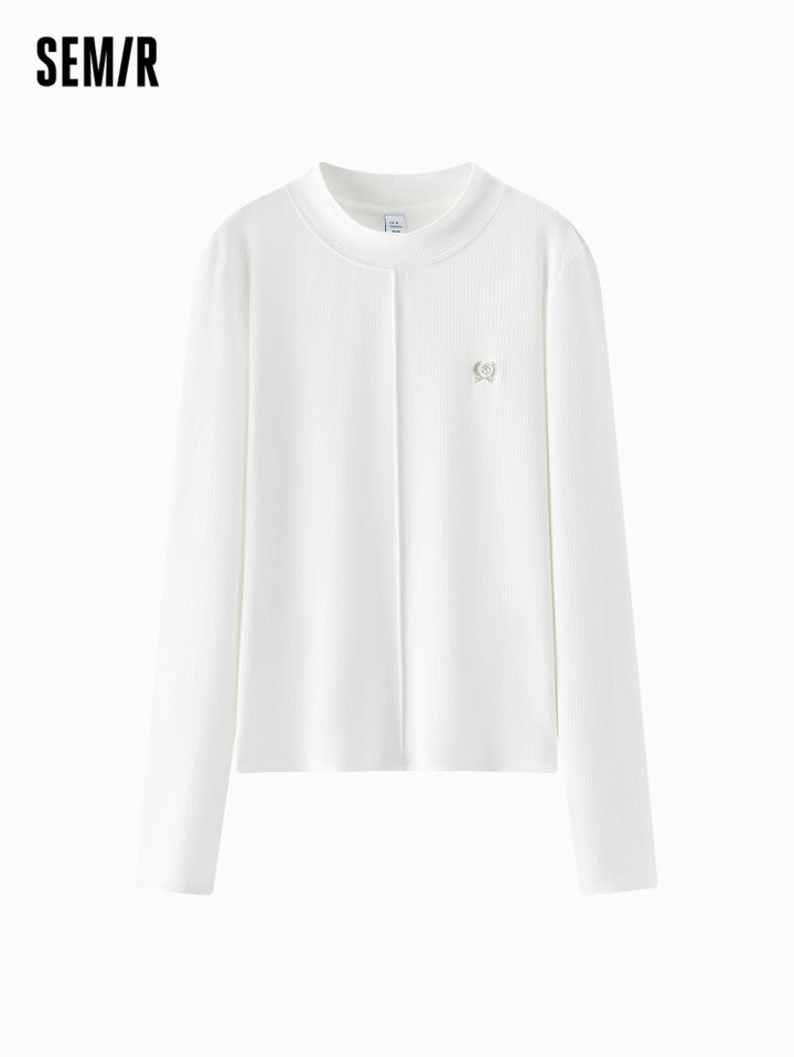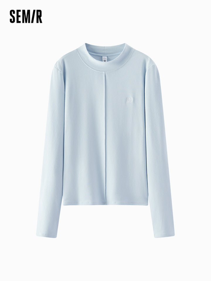 This T-shirt looks stylish worn alone without bulk, made of textured fleece, combining comfort and quality. Front 3D panel cuts optimize proportions; mock neck with delicate embroidery adds refined detail.