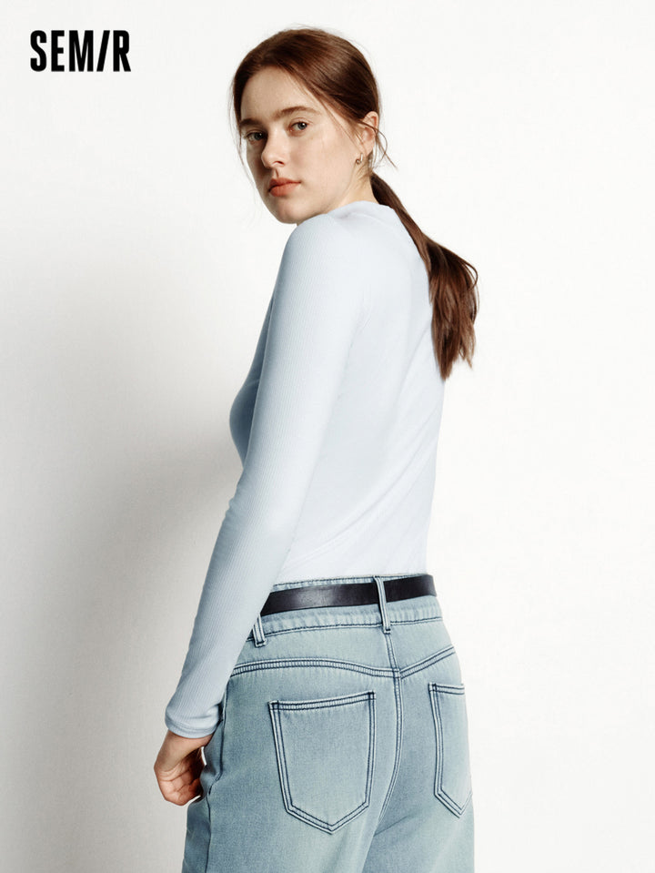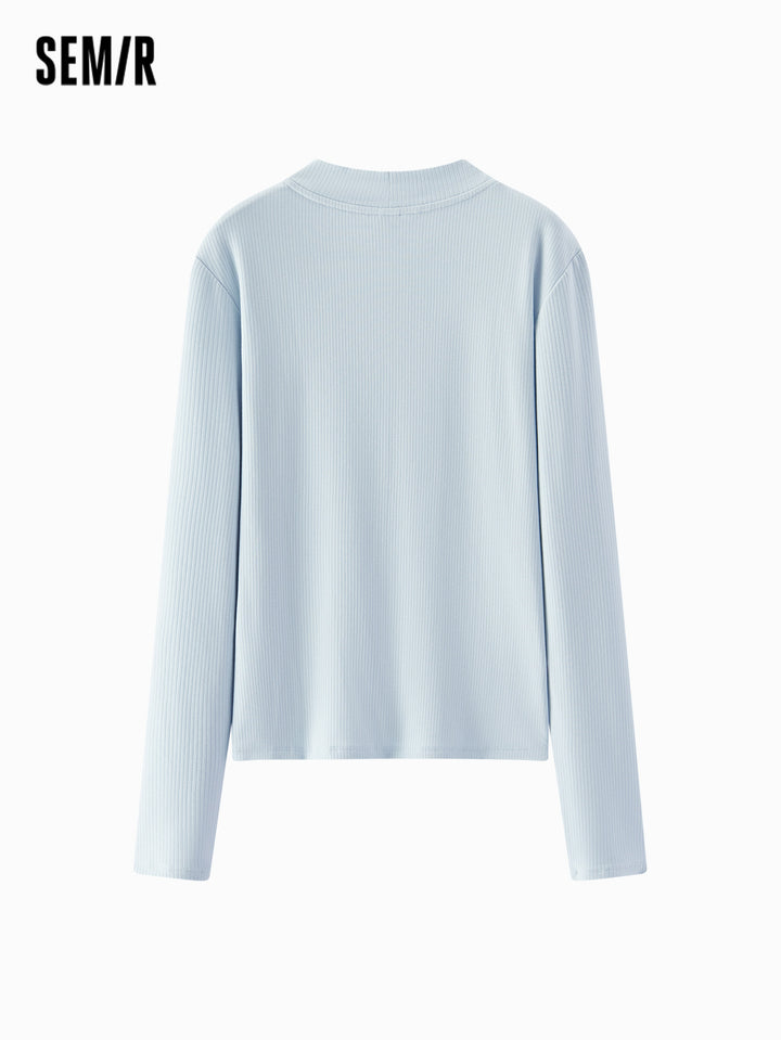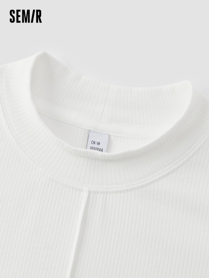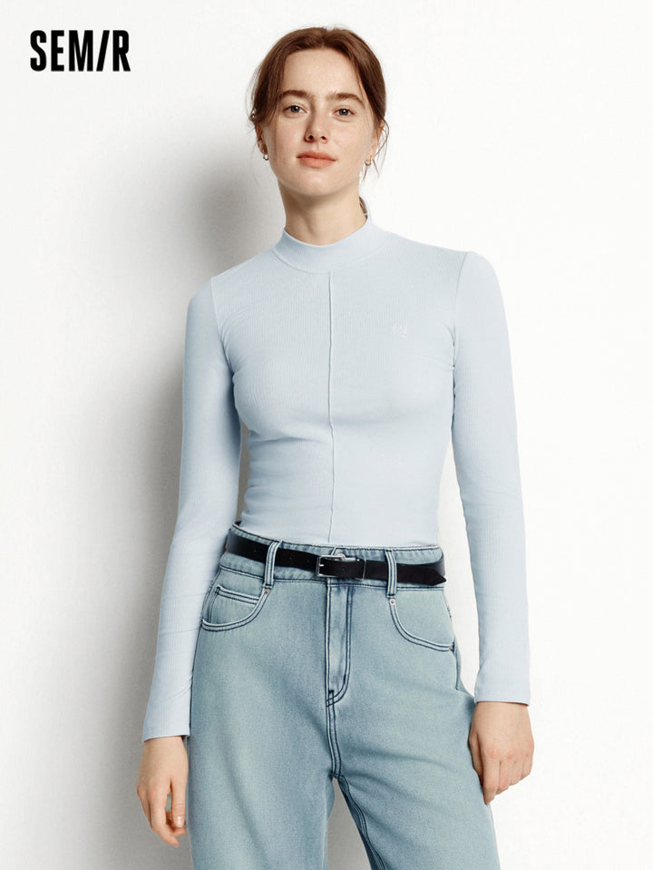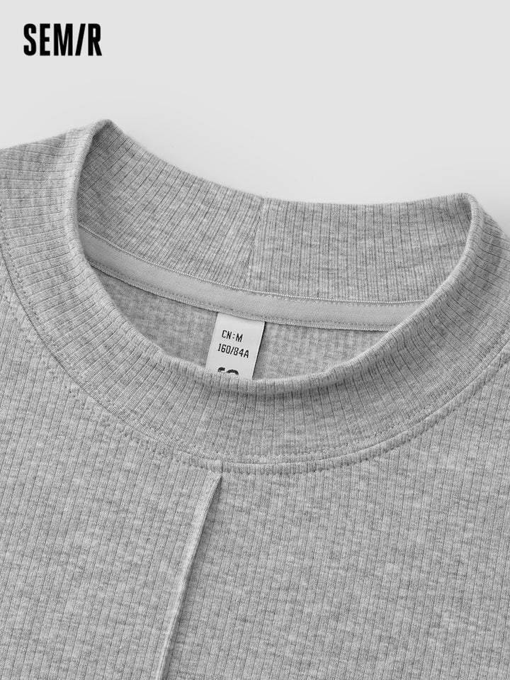 This T-shirt looks stylish worn alone without bulk, made of textured fleece, combining comfort and quality. Front 3D panel cuts optimize proportions; mock neck with delicate embroidery adds refined detail.