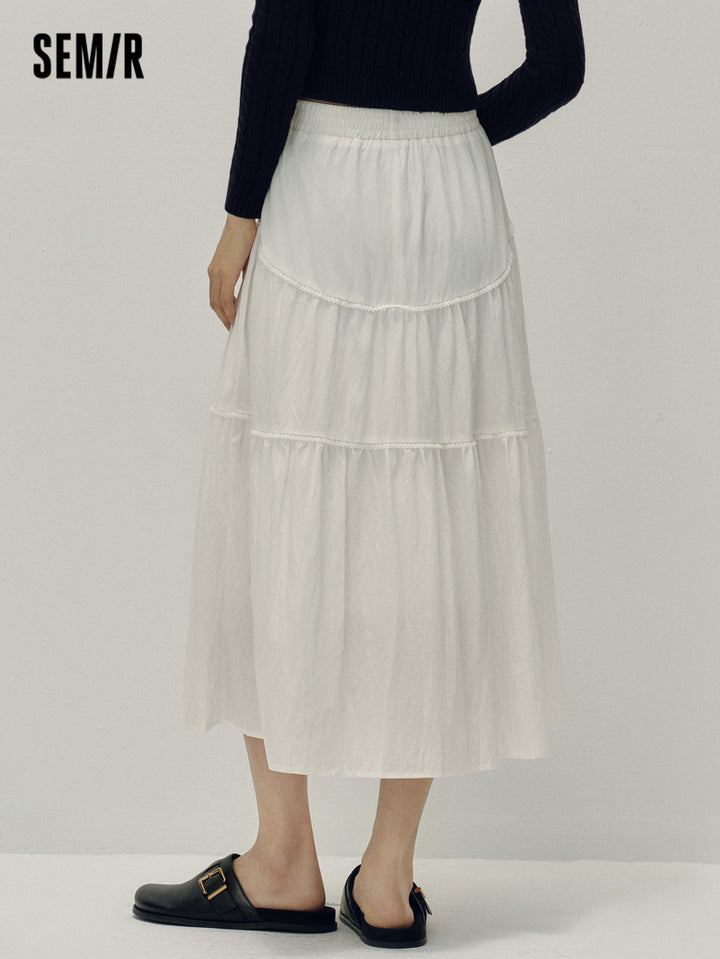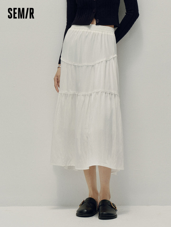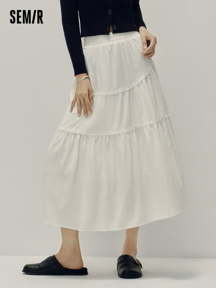 1. High-waist design, cinches waist and conceals abdomen; 2. High-elastic waistband, comfortable and non-restrictive, easy to wear; 3. A-line pleated skirt hem, slim and flattering; 4. Delicate lace floral trim accents