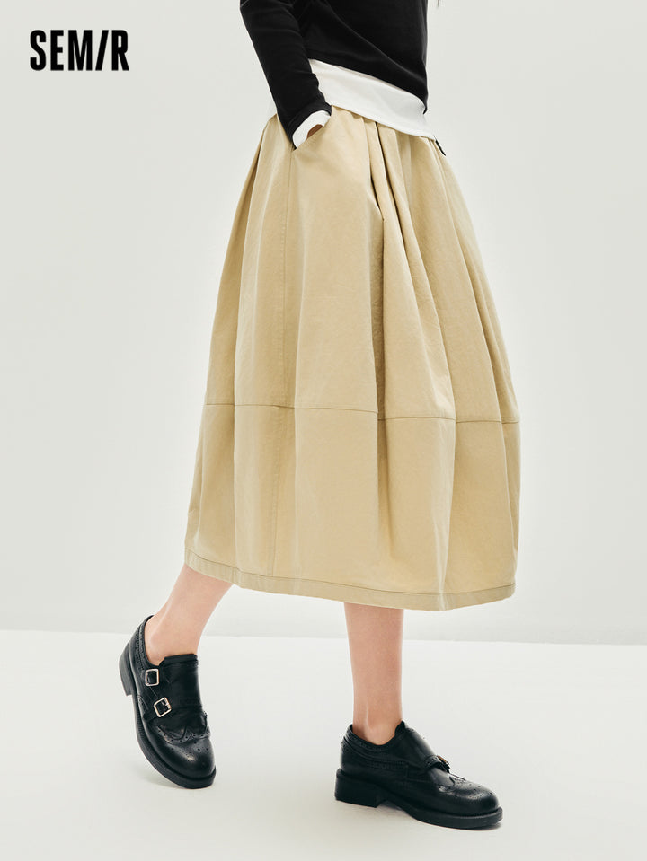 1. One mid-length balloon skirt with 3D shape; 2. Cotton blend fabric with fine piqué texture, unique wrinkled effect, crisp and comfortable; 3. Balloon silhouette adds style and shapes figure, high fit tolerance; 4. Elastic waist for easy wear; 5. Combines casual and feminine style, suitable for young fashion preferences.