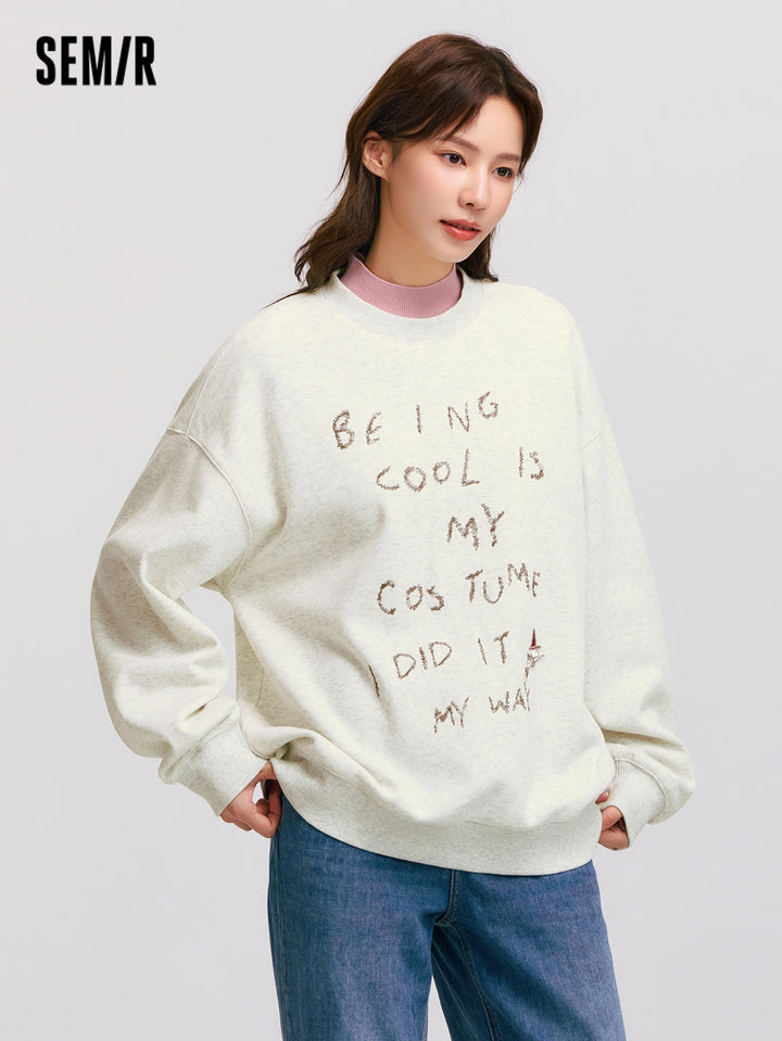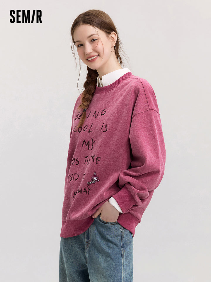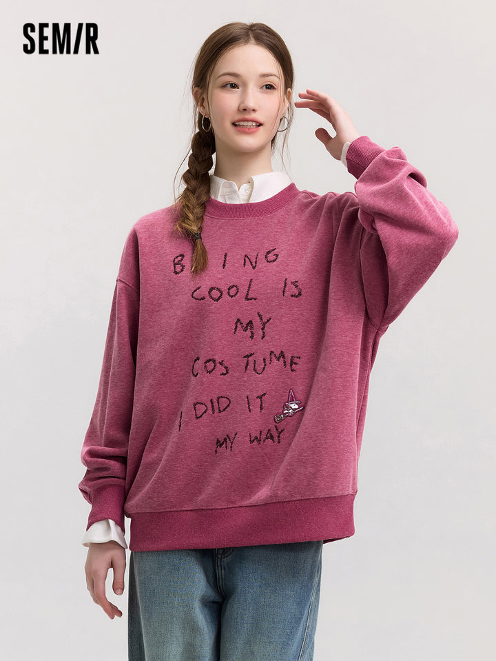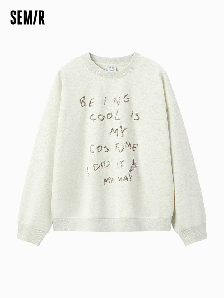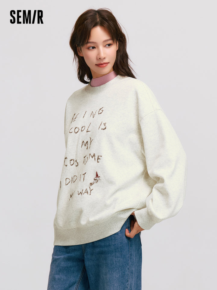 1. Colored flecked grey brushed fabric, different from ordinary sweatshirt fabric, adds trendy and marketable elements; 2. Snoopy Halloween “Trick or Treat” graphic with magic hat, printed with discharge method for vintage distressed dirty-fit look; 3. Multi-pattern design, different patterns use different techniques, offering multiple consumer options